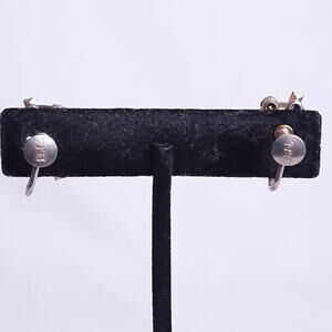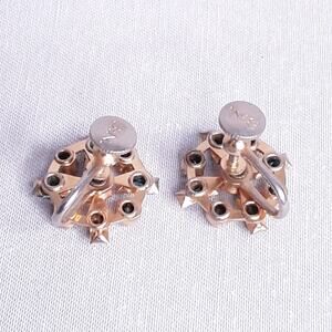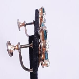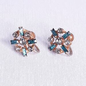 Vintage Stud Earrings Blue Navette Clear Round Rhinestones On Gold Tone Metal