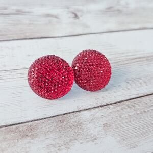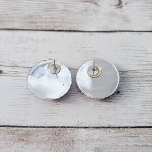 These earrings measure about 7/8". No earrings backs included. Rasied bumpy design. Light marks to the front. Multiple marks and signs of wear to rear. Glue visible to rear.