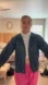 Stylish blue denim jacket with studded details. Features a zip-up front and elastic cuffs. A few of the bedazzle studs are half off but an easy fix to put them back on or take them off