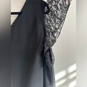 Vintage Studio 1940 Black Dress Lace Trim Lace Flutter Sleeve Size 26W