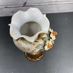 Vintage Studio Art Pottery 8 Inch Vase Applied Leaves Flowers Signed