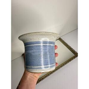 Vintage Studio Art Pottery Utensil Container, Light blue Floral Design Studio Pottery Vase, Crock Signed 4.5" Tall