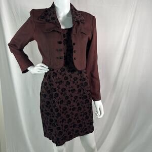 Vintage Studio C Maroon and Black Floral 2-Piece Dress and Jacket Set