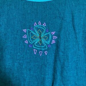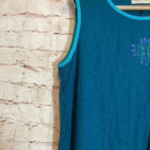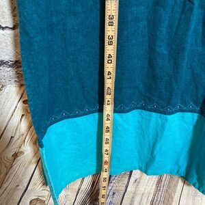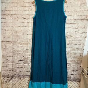 Vintage Studio Ease Midi Dress Womens 14 Linen Teal Turquoise Safari Elephant