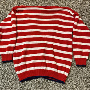 Vintage Studio HQ knit Cardigan with Red & White Stripes Navy Blue Trim