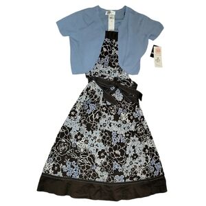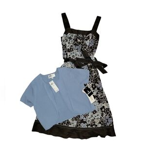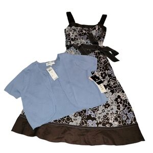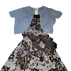 Vintage Studio I size 10 sleevless dress and cardigan set Purple brown & white