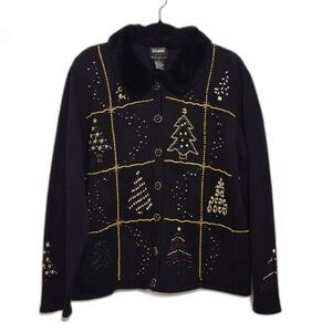 Vintage Studio Joy Holiday Sweater XL Button Front Embellished Faux Fur Collar