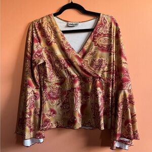Vintage Studio M.K. USA Bell Sleeve Y2K 2000s does 1970s Bell Sleeve Top EUC