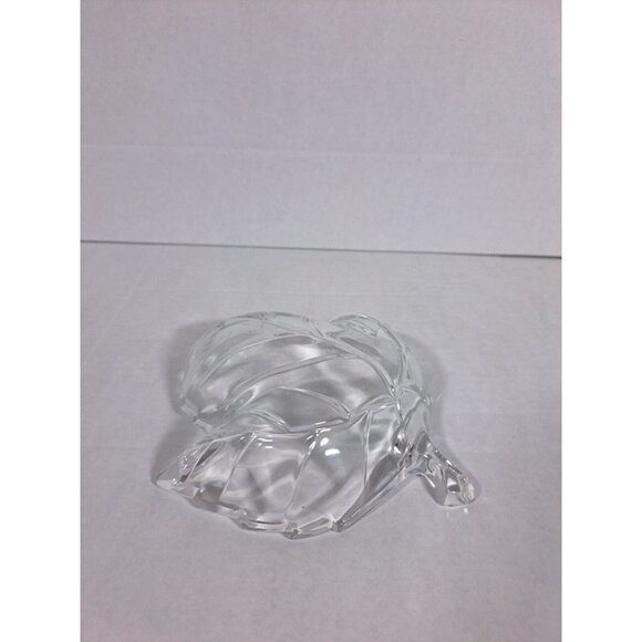 "Studio Nova Winter Maple Leaf Candy Bowl 5 1/2" is a clear glass bowl perfect for displaying candy or other small items. Its unique leaf design adds a touch of elegance to any setting.