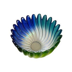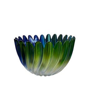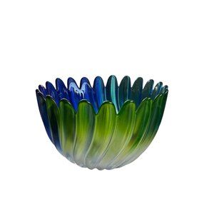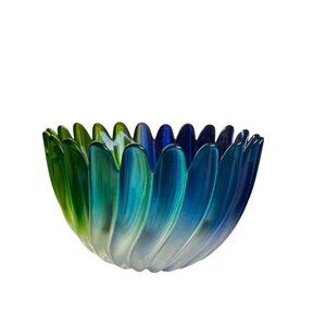 This elegant glass bowl features a stunning blue and green gradient, perfect for enhancing dining or decor settings. Its scalloped edges add a touch of sophistication.