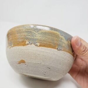Vintage Studio Pottery Ceramic Half Glazed Earthenware Bowl 6"