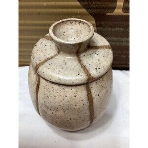 Vintage Studio Pottery Stoneware Jar With Lid Artist Signed Pumpkin Look Heavy