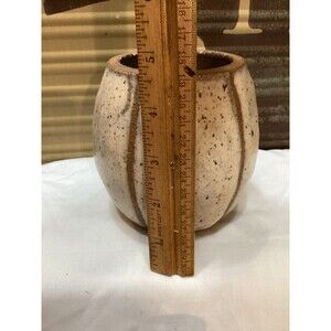 This vintage studio pottery stoneware jar with lid features a pumpkin look design in medium size with a striped pattern and multicolor finish. Handmade artist signed piece with a glossy finish, perfect for collecting or decorative use in farmhouse style. Made in the United States with an incised backstamp, this oval-shaped jar is both practical and stylish with its unique design and craftsmanship.
