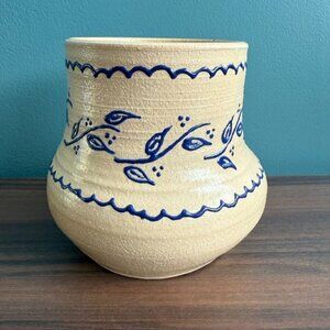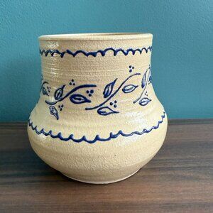 Vintage Studio Pottery Vase Off White Blue Flower Signed Tori Henry Chubby