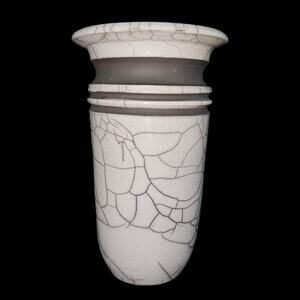 Vintage Studio Pottery Vase Signed Crackle Glaze 8.5" Tall Modernist White Gray