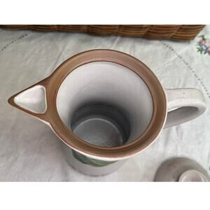 Pottery coffee tea carafe / pot with a spout and lid. This is a one of a kind piece. I do not believe another of this exact item was made. I have found a mug with a similar scene. Made in the USA by Eddy Kourishima and signed EddyK 34. Depicts a dall sheep and is likely an Alaskan depiction as I believe much of his work portrays Alaska. This is in very good condition. No blemishes, chips or cracks. I have another pieces listed that I believe is by the same artist with similar attributes and they would look nicely paired together.