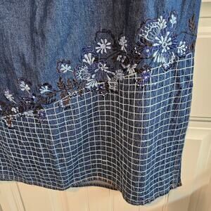 Vintage Studio West Denim Skirt Women Sz 8 Blue Maxi 90s Cottage Western Floral