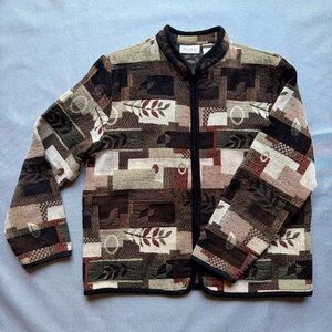 Vintage Studio Works Women's Tapestry Full Zip Jacket Leaf Fall Brown L