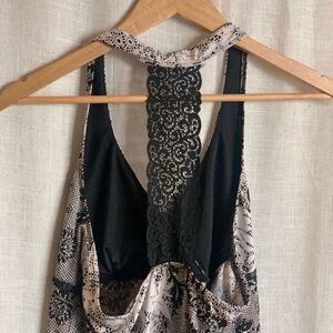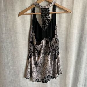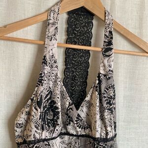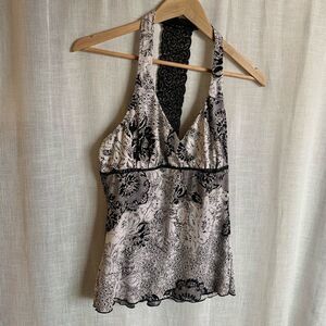 Vintage Studio Y Black & White Floral Halter Top - Custom Lace Detail, Womens XL