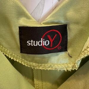 great, pre owned condition. green with silver sequin detail at the waist. cute tie sleeves.