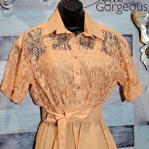 Overshirt-- pit to pit-19" length- 16.5", waist snaps & ties at 26" Stretch?-no