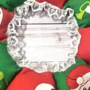 Vintage Stuffed Fabric Pillowed Lace Wreath Christmas Farmhouse Decor Red Green