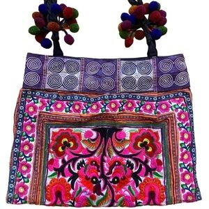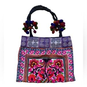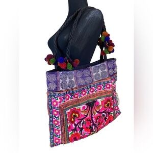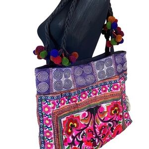 Vintage Stunning 🤩 BOHO Embroidered Braided Straps Canvas Tote Bag