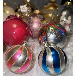 Vintage Stunning Embellished Hand painted Blown Glass Christmas Ornaments #30