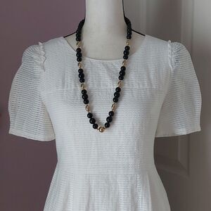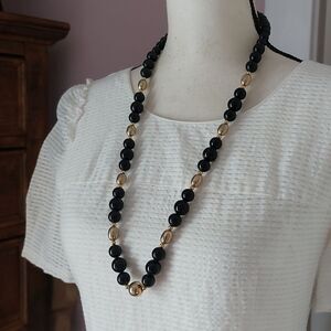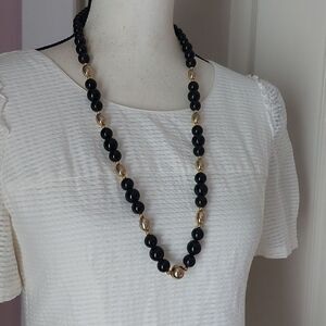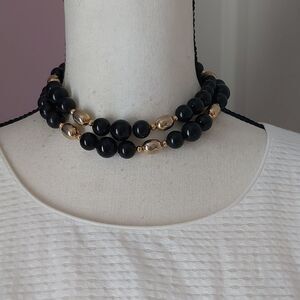 Vintage Sturdy Black Gold Bead Necklace Beads Strung on Metal Chain