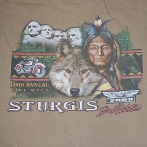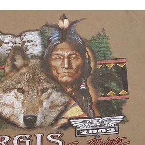 Vintage Sturgis Native American Wolf Mount Rushmore Tan Biker Motorcycle Tshirt.