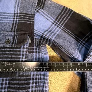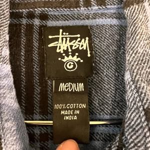 Vintage Stussy Blue Buffalo Plaid Flannel, 2 Front Pockets Button Up Long Sleeve. Size Medium.