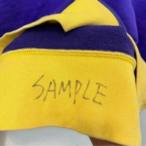 In size L, the only flaw that it has is the SAMPLE written inside the sweatshirt