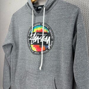 Vintage Stussy Hoodie Mens S Grey Logo Roots Reggae Surf Tie Dye Pullover Y2K