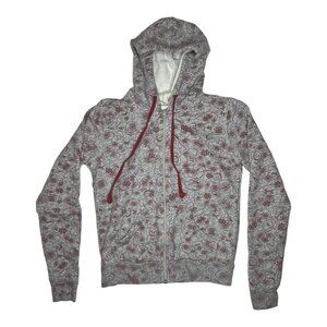 Vintage Stussy Hoodie Sweatshirt Women's Size XS All Over Print Skull Spiderweb