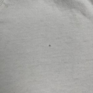 Size M. Good condition, very faint yellowing under pits. Pinhole on front. Tag is partially un-sewn.