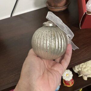 Vintage Style 4" Mercury Ribbed Glass Ornaments (6), Silver, Handcrafted, India