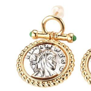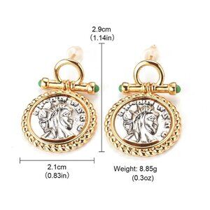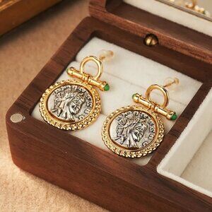 Vintage Style Ancient Coin Earrings Pierced Silver Gold Tone Chandelier New