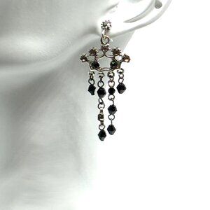 Vintage Style Black Chandelier Faceted Bead Rhinestone Silver Tone Dangle Post