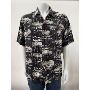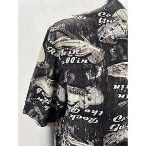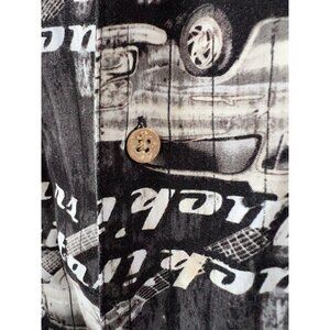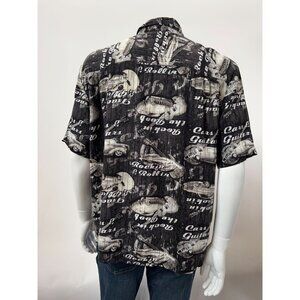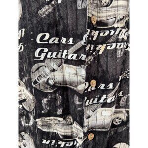 Vintage Style Black Graphic Mens Button-Up Shirt W/ Cars & Guitars Print Short S