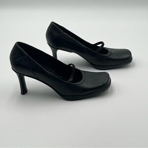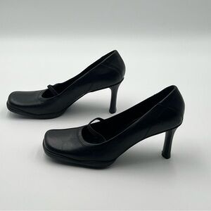 Elevate your style with these sleek and sophisticated black leather square toe pumps from Apostrophe. Designed with a vintage look with a classic style, these pumps feature a timeless square toe and a smooth, polished leather finish. The low stacked heel offers both comfort and stability, making them perfect for day-to-night wear. Versatile enough to pair with anything from professional attire to evening outfits, these pumps are a wardrobe essential for any fashion-forward woman Women’s size 8 3” heel Preowned with minimal signs of wear and tear Ships promptly