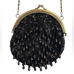 Vintage Style Black Mini Elegant Sequin Evening Bag Chain Crossbody Purse