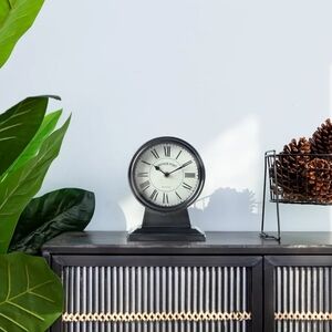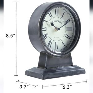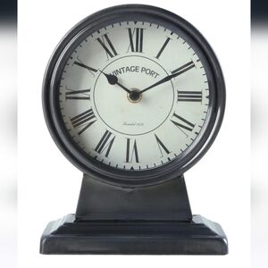 Enhance your home decor with the Vintage Black Table Clock. Its classic design and bold black color make it a timeless addition to any room. NEW IN BOX AND IN EXCELLENT CONDITION!