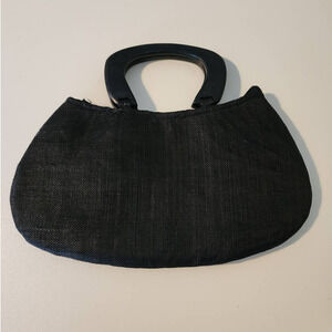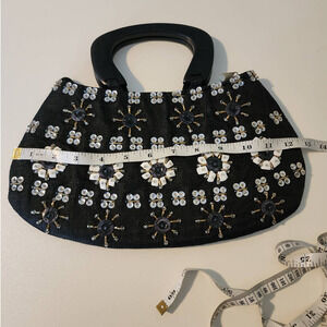 Vintage Style Black Woven Floral Beaded Satchel Purse Stacey Designs