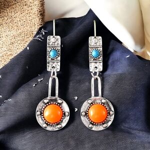 🆕️Vintage Style Boho Chic Drop Trendy Spring Earrings Orange Turquoise Accents