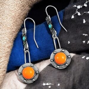 boho chic earrings, vintage style earrings, statement earrings, festival jewelry, retro dangle earrings, orange drop earrings, turquoise earrings, bohemian jewelry, antique silver earrings, artisan style earrings, bold earrings, handmade look earrings, indie earrings, ethnic earrings, western style jewelry, colorful earrings, fall fashion accessories, spring fashion 2025, unique gift for her, holiday gift idea, stocking stuffer, trending earrings 2025, gypsy style jewelry