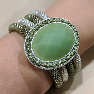 Vintage Style Bracelet - Two Tone - Green Gem