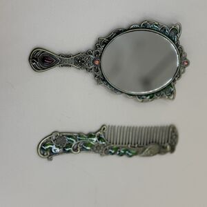 Vintage Style Butterfly Peacock Vanity Mirror & Comb Set Jeweled Enamel
