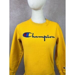 Vintage Style Champion Sweatshirt Womens XS Yellow Reverse Weave Warm Up Pullover