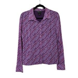 Vintage Style & Co Purple Animal Print Button Up Shirt L 90s Y2K Party