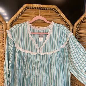 Vintage Style Cozee Corner 4X Cotton Lace Yoke Nightgown Blue Stripe cottagecore